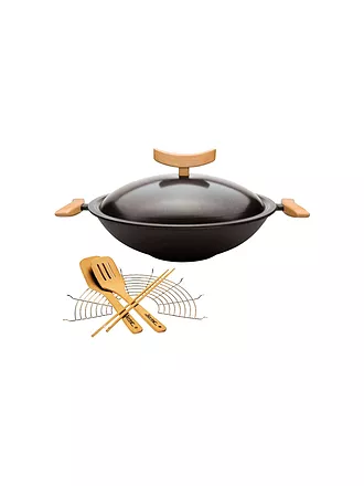 Ein Wok ist ein traditionelles Kochgeschirr, das seinen Ursprung in der chinesischen, süd- und südostasiatischen Kochkultur hat. Er punktet mit seiner Eignung für ganz unterschiedliche Zubereitungstechniken. Sie verwenden einen solchen Topf zum Kochen oder Dünsten, als Pfanne oder sogar zum Frittieren, Räuchern und Rösten. In Woks lassen sich somit nicht nur asiatische Gerichte mit wenig Aufwand zubereiten. Von europäischen Kochbehältern unterscheiden sich Woks durch ihr charakteristisches Design. Sie haben keinen flachen Boden mit hochgezogenen Wänden, sondern sind wie eine Kugelkappe geformt. Dadurch verteilt sich die Hitze in sehr effektiver Weise. Die sich nach unten verjüngende Form bringt weitere Vorteile mit sich, etwa einen deutlich reduzierten Bedarf an Öl. Woks sind ideal für kalorienbewusstes, vitaminschonendes Kochen. Zu einem echten asiatischen Wok gehören speziell geformte Herdstellen oder Brenner. Da solche in westlichen Haushalten meist nicht zur Verfügung stehen, werden zur Verwendung auf Elektro- und Induktionsherden Varianten mit abgeflachtem Boden angeboten.